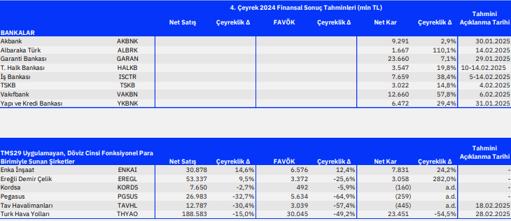 4Ç24 Finansal Sonuç Tahminleri