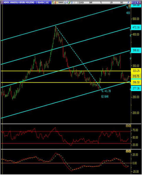 • Grafikte görüldüğü üzere 333.25 direnci önemli bir konumda yer alıyor. Bu seviye üzerinde bir kapanış görülmesi halinde orta vadede hedeflenebilir seviyeler grafik üzerinde gösterilmiştir.