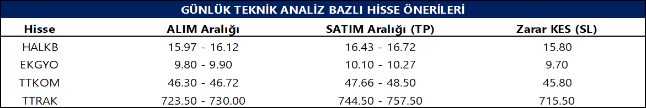 Günlük Teknik Analiz Bazlı Hisse Önerileri