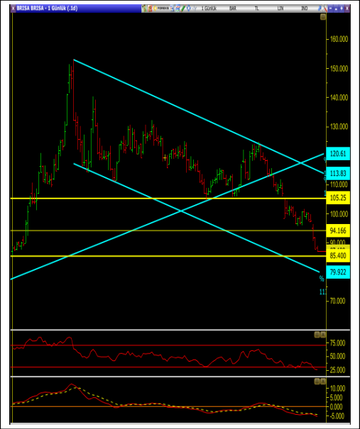 • Satış baskısının devamı halinde 85.40 seviyesi ilk destek olarak takip edilebilir. Bu seviyenin kırılması halinde 80.00 seviyesine kadar bir geri çekilme yaşanabileceğinden ilk destek seviyesi aynı zamanda stoploss seviyesi olarak da kullanılabilir.