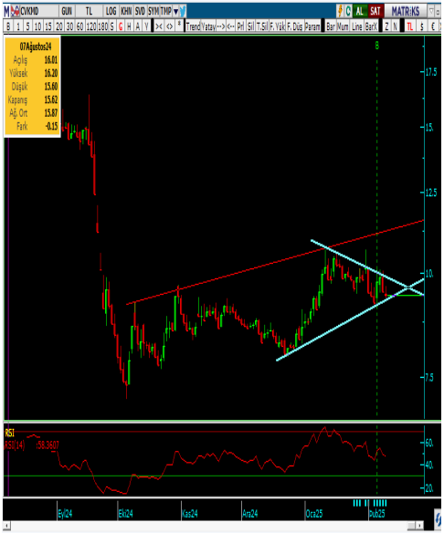 • Yükselen kanal direnci 10.7 8 den satış baskısının etkisiyle düzeltme sürecine giren hisse de 9.30 yükselen trend desteği durumunda.