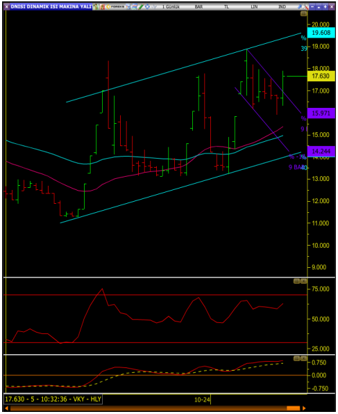 • Teknik göstergelerini incelediğimizde genelinin pozitif olmasının yanı sıra önemli ortalamalardan 22 ve 50 günlük ortalamalarının üzerinde hareketine devam ediyor.