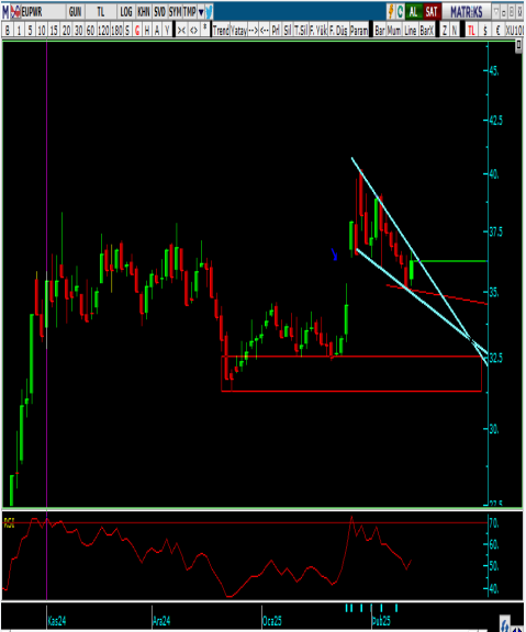 • Kırılım sonrası yakın vade dirençler sırayla 37.08 ve 39.72 seviyeleridir.