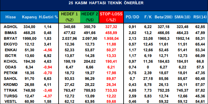 Haftalık Hisse Önerileri / A1 Capital – (25-29 Kasım 2024)