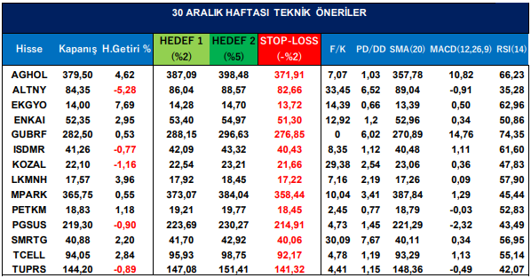 Haftalık Hisse Önerileri / A1 Capital – (30 Aralık 2024 – 3 Ocak 2025)