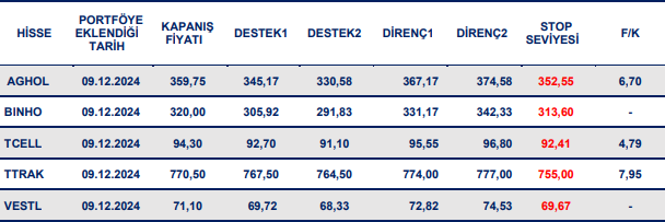 Kısa vadeli öneri listemize AGHOL, BINHO, TCELL ve VESTL pay senetlerini dahil ediyoruz. TTRAK pay senedini portföyde tutmaya devam ediyoruz.