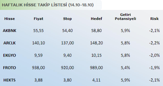 Haftalık Hisse Önerileri / Colendi Menkul – (14-18 Ekim 2024)