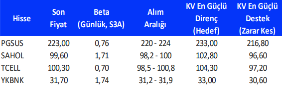 Bu hafta teknik takibimizdeki hisseler: PGSUS, SAHOL, TCELL, YKBNK