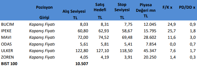 Teknik olarak BİST100 endeksi 10250 seviyesi üzerinde kalmaya devam ettiği sürece yükseliş eğilimi devam edebilir. Olası düzeltme hareketinde endeksin 10.250 seviyesi üzerinde kalmaya devam etmesi önemli olacaktır. Haftalık teknik göstergeler yükseliş eğiliminin devamını desteklerken günlük vadede teknik göstergeler yatay bir görünüm sergiliyor. Dolayısıyla geçen haftaki yükseliş sonrası bir miktar yavaşlama olabilir. 10700 seviyesindeki direncin aşılması halinde 11.400 seviyesindeki zirve seviyelere doğru yükseliş sürebilir.