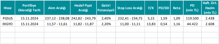 *Tablo yer alan fiyat sütunu verileri ile diğer veriler hisselerin portföye eklendiği tarihten önceki son işlem günü kapanış verileri üzerinden hesaplanmıştır.