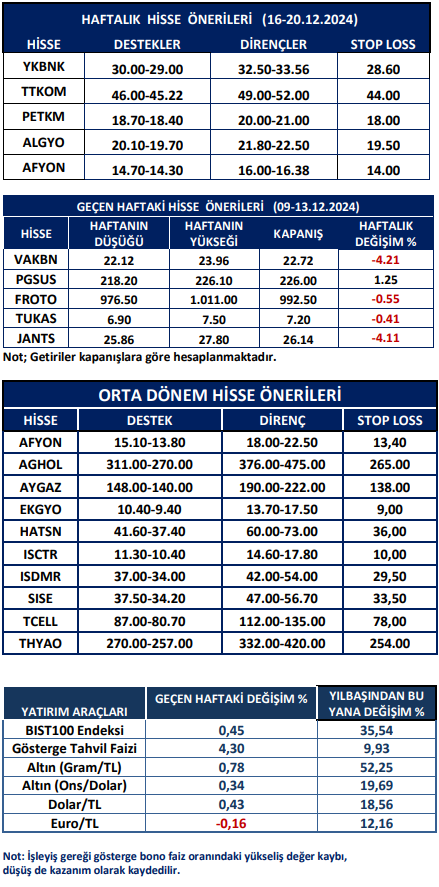 Haftalık Hisse Önerileri / Meksa Yatırım – (16-20 Aralık 2024)