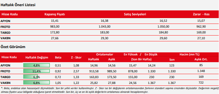 Haftalık Hisse Teknik Öneri Listesi