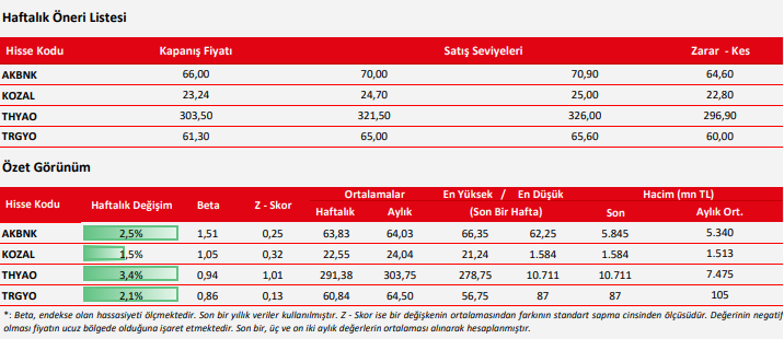 Haftalık Hisse Önerileri