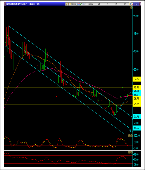 • Beklentimizin aksine, 26.74 seviyesinin altına düşülmesi durumunda ise kısa vadeli yükselen trend kırılmış olacağından satışlar hızlanabilir. Bu durumda ise 25.52 ve 23.98 seviyeleri alt destekler olarak izlenebilir.