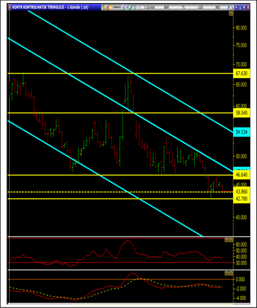 • 42.78 – 46.64 bandı yeni alım ve ekleme yapmak için bir fırsat olarak değerlendirilebilirken 42.78 seviyesi aynı zamanda ilk destek seviyesi olarak takip edilebilir.
