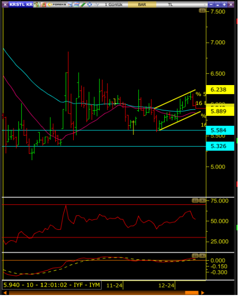• Bu seviyede tutunamadığı takdirde kanalın alt bandına yaklaşacağından geri çekilmeler alt bandına denk gelen 5.84 seviyesine kadar sürebilir.