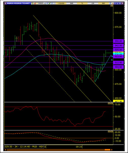 • Yükseliş trendinin devam etmesi halinde ilk etapta daha önce birkaç kez test ettiği 535.00 ara direnç seviyesinin üzerinde kapanış gerçekleşip gerçekleşmeyeceğini izleyeceğiz.