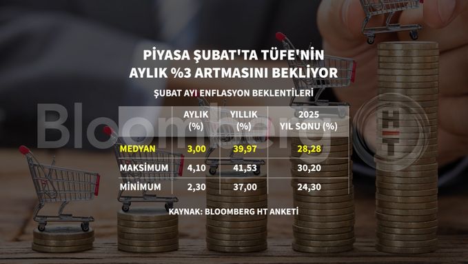 Ankete katılan 21 kurumun medyan beklentisi enflasyonun Şubat yüzde 3 seviyesinde gerçekleşeceği yönünde oldu.