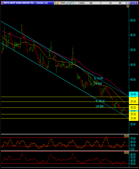 • Görülebilecek olası tepki alımlarında ise fiyatın tepki alımlarının zayıf kalmaya başladığı ve satış baskısının görüldüğü 35.52 ve 37.54 ilk ara dirençler olarak takip edilebilir.