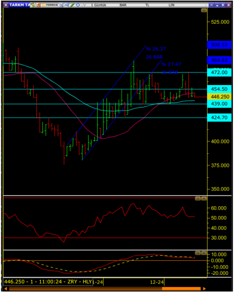 • Tepki alımlarının satışları karşıladığı durumunda ilk etapta 454.50 direnç seviyesi izlenebilir ve bu seviye aşılması halinde 100 günlük ortalamasına da yaklaşacaktır.