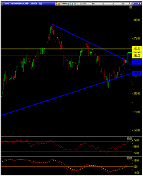 • Yukarı yönlü hareketin devamı halinde 260.50 seviyesi ilk direnç olarak hedeflenebilir. Ancak daha önce de bu seviyelerden gelen kar satışları ve kısa vadeli göstergelerin aşırı alı m bölgesinde olması göz önünde bulundurulduğunda gelebilecek kar satışlarına karşı temkinli olunmalıdır.