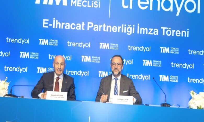 Türkiye İhracatçılar Meclisi (TİM) ve e-ticaret platformu Trendyol, Türkiye’nin e-ihracat potansiyelinden daha fazla marka, üretici ve esnafın faydalanmasını sağlamak amacıyla stratejik bir işbirliği gerçekleştirdi. Bu işbirliği, e-ihracat alanında bir ilke imza atarak TİM’in e-ihracat partneri olarak Trendyol’u belirlemiştir. İmzalanan protokol ile birlikte, ekosistemin tüm paydaşlarının e-ihracata yönlendirilmesi hedeflenmektedir. Böylece Türkiye’de sınır ötesi ticaretin sürdürülebilir bir şekilde gelişmesi ve ekonomiye katma değer yaratılması sağlanacaktır.