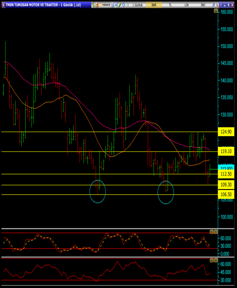 • Beklentimizin aksine, olası bir satış baskısıyla karşılaşılması ve 112.50 seviyesinin altına düşülmesi durumunda ise 109.30 ve fiyatın daha önce ikili dip yaptığı 106.50 seviyeleri alt destekler olarak izlenebilir.