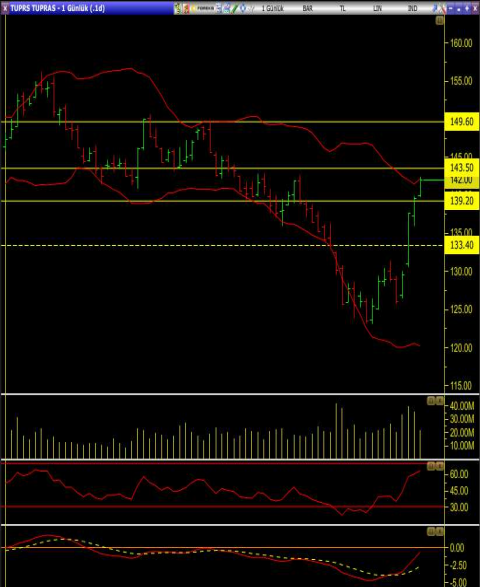 • 143.50 üzerinde bir kapanış görülmesi halinde bolinger üst bandının da aşılması ile aşırı alım seviyesindeki hissede kar satışları görülebileceğinden temkinli olmak gerekebilir.