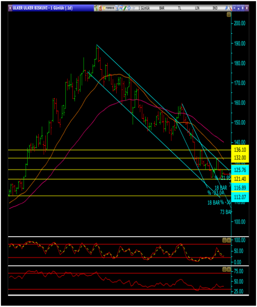 • Olası bir orta vadeli düşen kanalın devam etmesi ve 121.40 seviyesinin kırılması durumunda ise 116.80 ve 113.00 seviyeleri alt destekler olarak takip edilebilir.