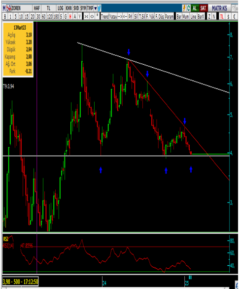 Daha önce iki kez tepki aldığı yatay desteğine kadar düzeltmesini yapan hissede 3.90 haftalık bazda stoploss seviyesi olarak destek konumunda.
